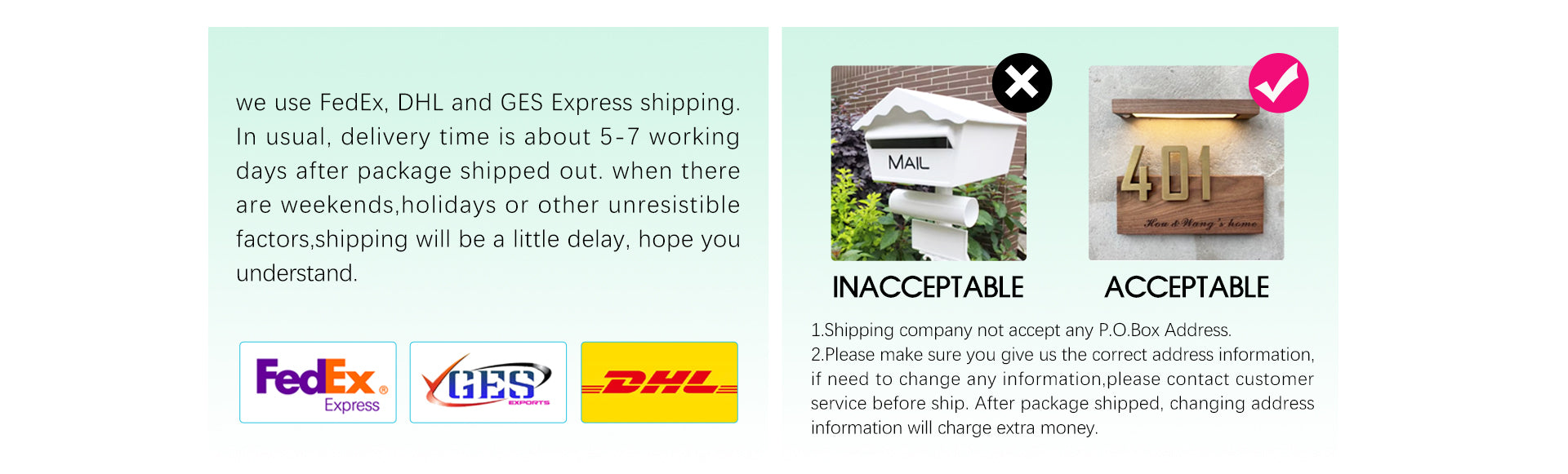 1. If your order has left us with inaccurate or incomplete address information, or contained unverified details, the order processing time may be delayed. We encourage all customers to carefully check your order information, especially the shipping address.